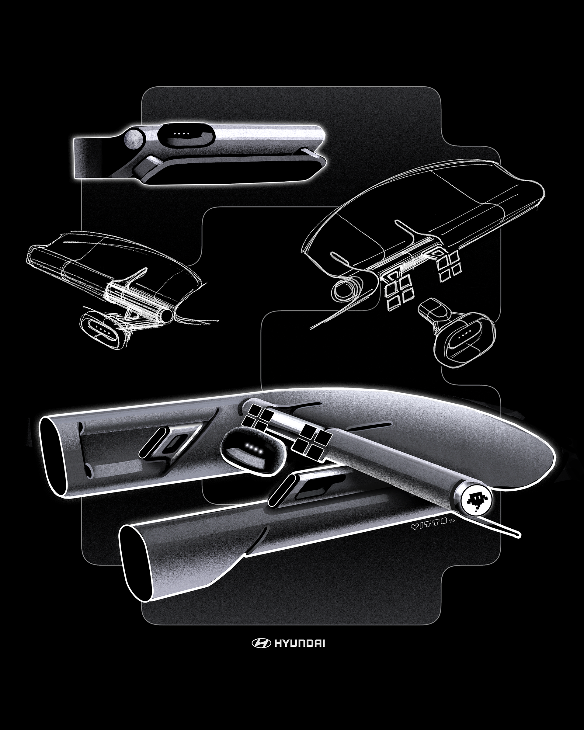 The interior controls, called 'widgets', are modular and customizable to match your lifestyle. Into tech? Add all the screens you want. Prefer analog? Swap them for your favorite haptic buttons. We even imagine a future community where users exchange, customize and perhaps even (co)-create their own widgets!